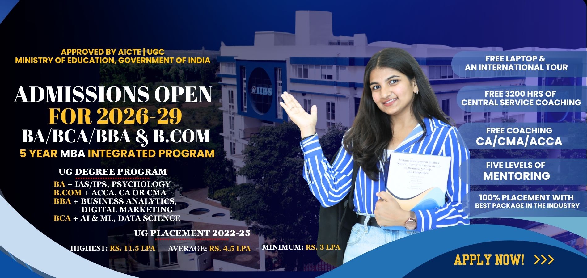 The International Institute of Business Studies (IIBS), Bengaluru, is a well-known institution for undergraduate and management education, shaping the leaders of tomorrow. Recognized by the UGC and affiliated with Bangalore City University, IIBS Bangalore offers a future-ready curriculum designed to meet global standards. With a focus on academic excellence, industry-integrated programs, and experiential learning, the institute empowers students to excel both academically and professionally. Backed by expert faculty, state-of-the-art infrastructure, and strong placement support, we provide a transformative environment that nurtures innovation, leadership, and career success.