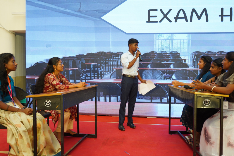 Our vibrant UG Intra-College Cultural Fest, a day-long celebration of colors, rhythm, and boundless talent. This exciting event brings together students, highlighting their creative spirit and enthusiasm. With a dynamic lineup of events, KALAKRUTHI offers something for everyone—from captivating off-stage competitions like Mehendi Art and Painting to high-energy on-stage performances, including Group and Solo Dance, Singing, and a dazzling Fashion Show. Each segment of KALAKRUTHI is designed to showcase the unique talents of our participants and foster an atmosphere of artistic expression and community celebration.